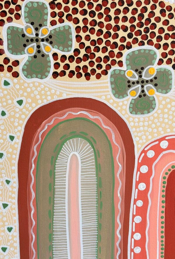 Each of the two Puti-puti canvases tells a story of the original bakers. They selected, cultivated and grew plants for their seeds to grind and make flour and panemi (bread).